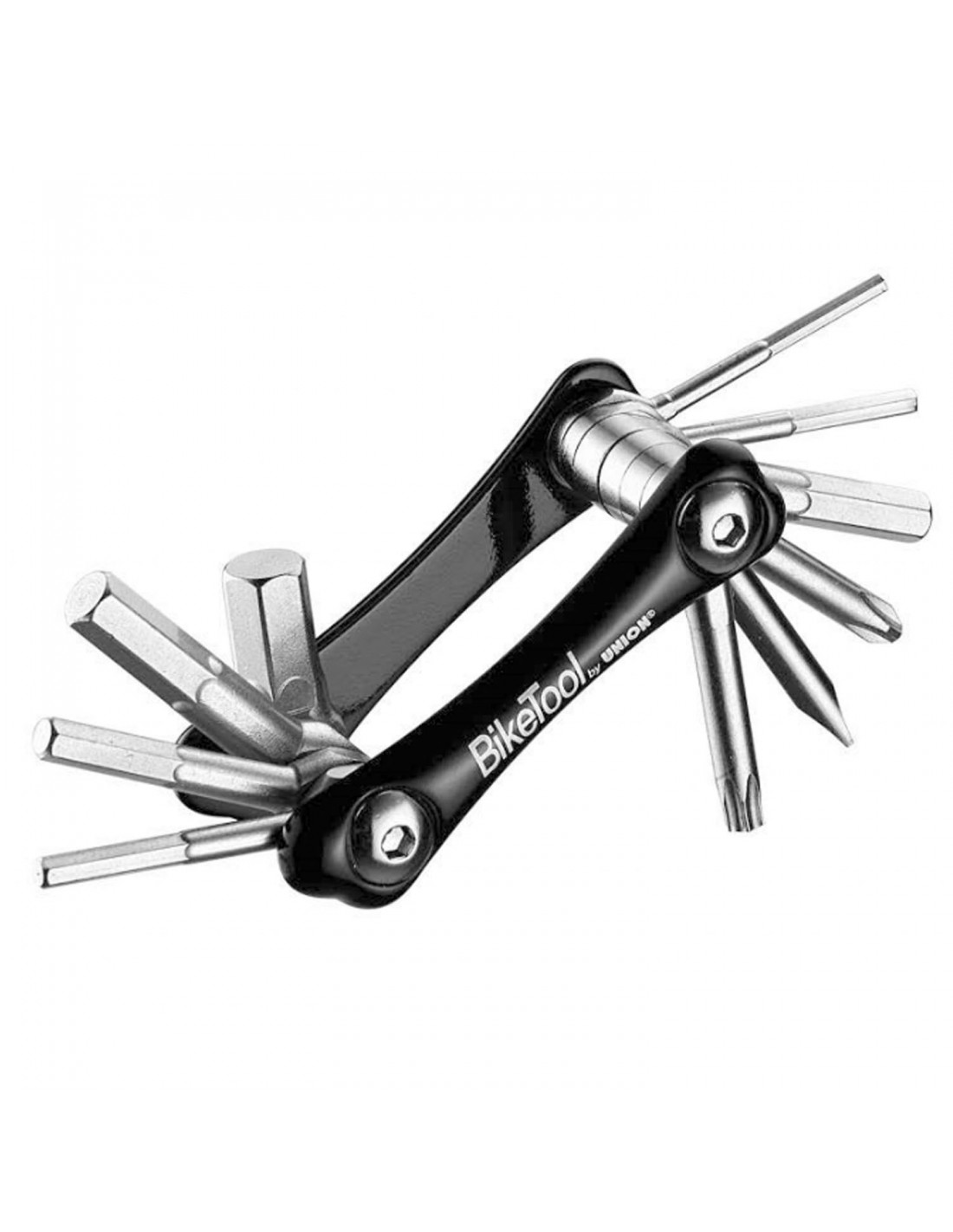 La Union BT-985 es una multiherramienta plegable de bolsillo, diseñada para ajustes rápidos y mantenimiento básico en bicicletas MTB, ruta y urbanas. Su diseño ergonómico tipo “knucklebone” facilita el uso y transporte, ofreciendo un set completo de llaves Allen, destornilladores y Torx en un solo dispositivo.
