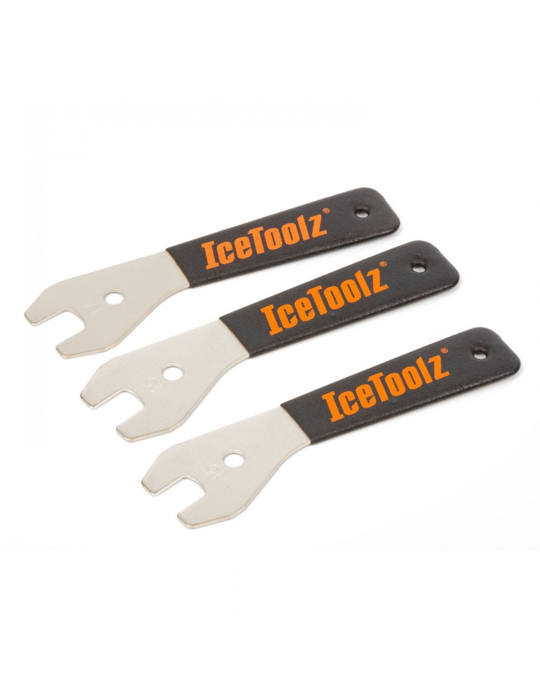 El IceToolz 47X3 es un set profesional de llaves planas para conos, diseñado para mecánicos y ciclistas que realizan mantenimiento en mazas de rueda. Su perfil delgado permite acceder fácilmente a los conos sin desmontar otras partes, y el mango recubierto antideslizante mejora el agarre durante el uso.