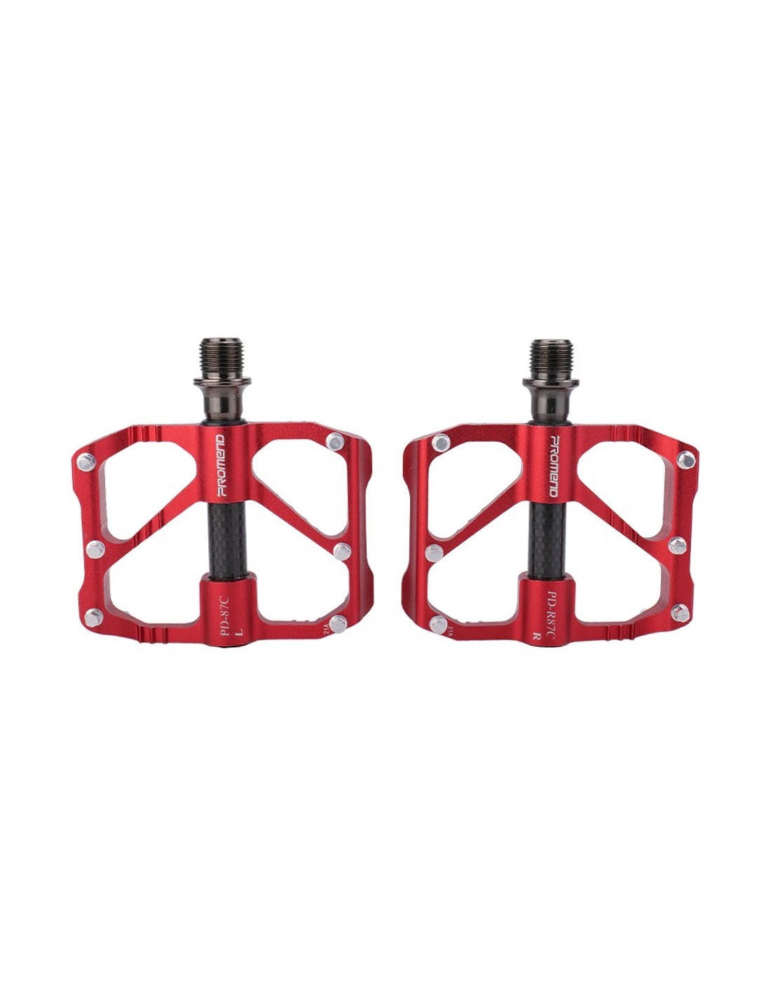 Los pedales Promend PD-R87 están fabricados en aluminio con triple rodamientos sellados y eje de fibra de carbono. Son ideales para ruta, MTB y urbano, ofreciendo suavidad de giro, diseño antideslizante y excelente durabilidad.