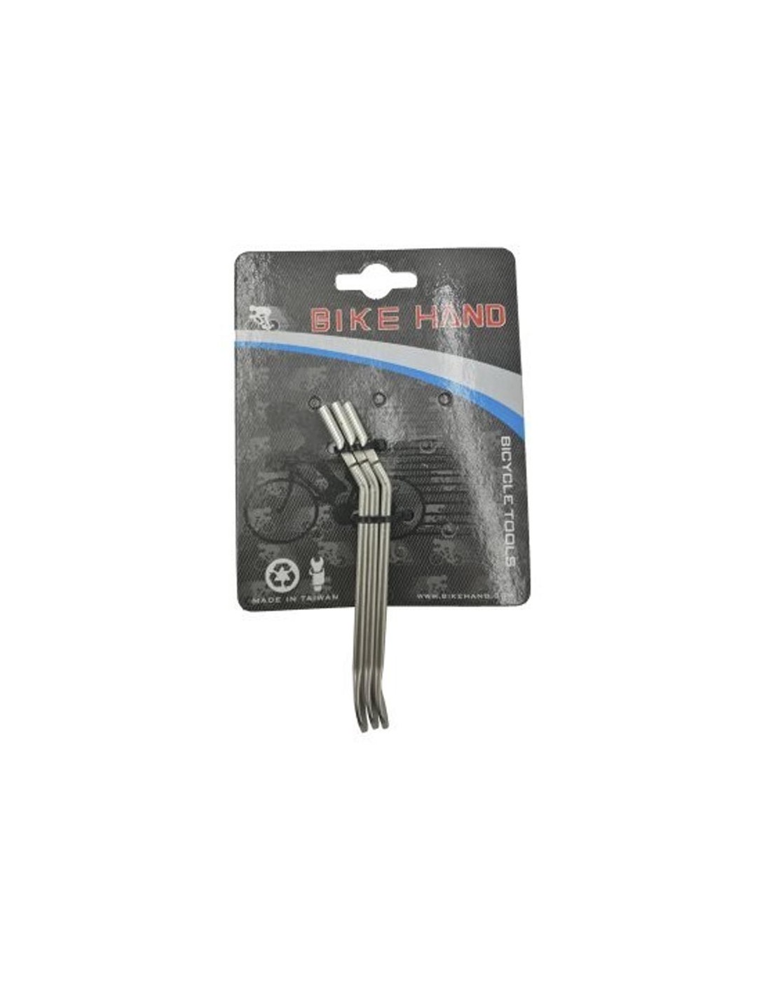 No hay más artículos en su carritoEl Bike Hand YC-313 es un set de palancas metálicas para neumáticos, diseñado para facilitar el desmontaje de cubiertas de bicicleta, especialmente en rines ajustados o neumáticos rígidos. Su construcción en aluminio Hi-Ten ofrece una excelente combinación de rigidez y ligereza, permitiendo aplicar fuerza sin riesgo de rotura ni daño a la llanta.