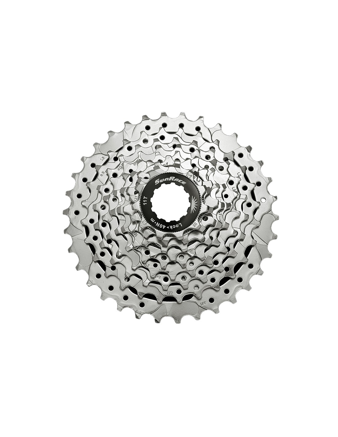 El SunRace CSM96 9AV 9V 11-34T es un cassette de 9 velocidades diseñado para transmisiones de doble o triple plato en bicicletas MTB, urbanas y trekking. Su rango de 11 a 34 dientes ofrece una relación equilibrada entre agilidad y tracción, ideal para recorridos mixtos y urbanos. Compatible con núcleos Shimano HG, es una opción confiable, liviana y duradera para transmisiones de 9 velocidadesal.