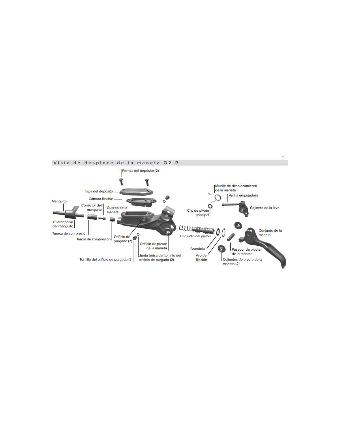 El G2 R es compatible con montajes Direct Mount DIR y Post Mount con adaptadores adecuados, adaptándose a la mayoría de cuadros y horquillas de MTB disponibles en el mercado. El freno utiliza fluido hidráulico DOT 4 y se instala con facilidad, ofreciendo un mantenimiento accesible incluso para usuarios que trabajan en su propia bicicleta.