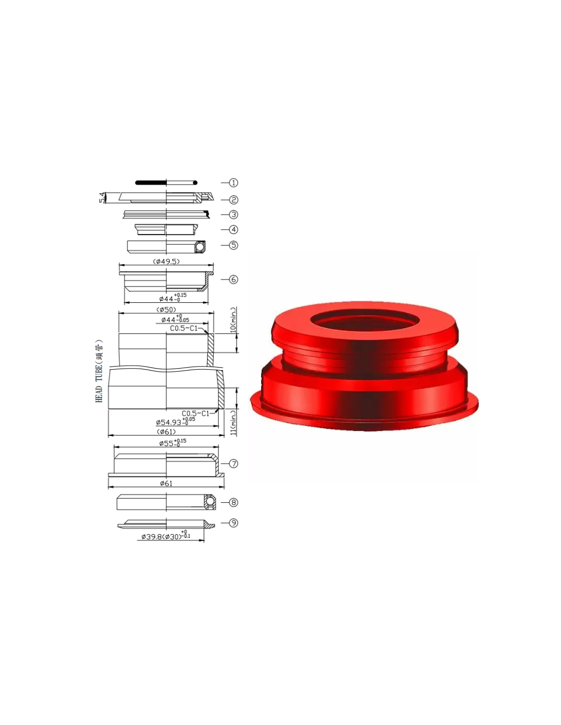 JUEGO DE DIRECCION NECO 44X55MM (SEMI-INTEGRADO, CONICO 1-1/8", SELLADO, TAPA BAJA) ZS44/28.6|ZS55/39.8 MOD: H385