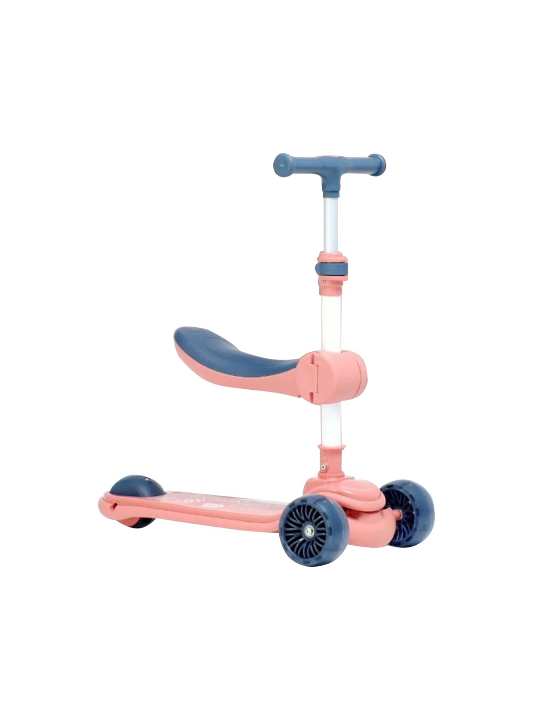 Mini scooter de tres ruedas estándar y volante ajustable. El scooter se desmonta en la plataforma al volante con solo tocar un botón. De esta forma, es conveniente llevar y transportar.