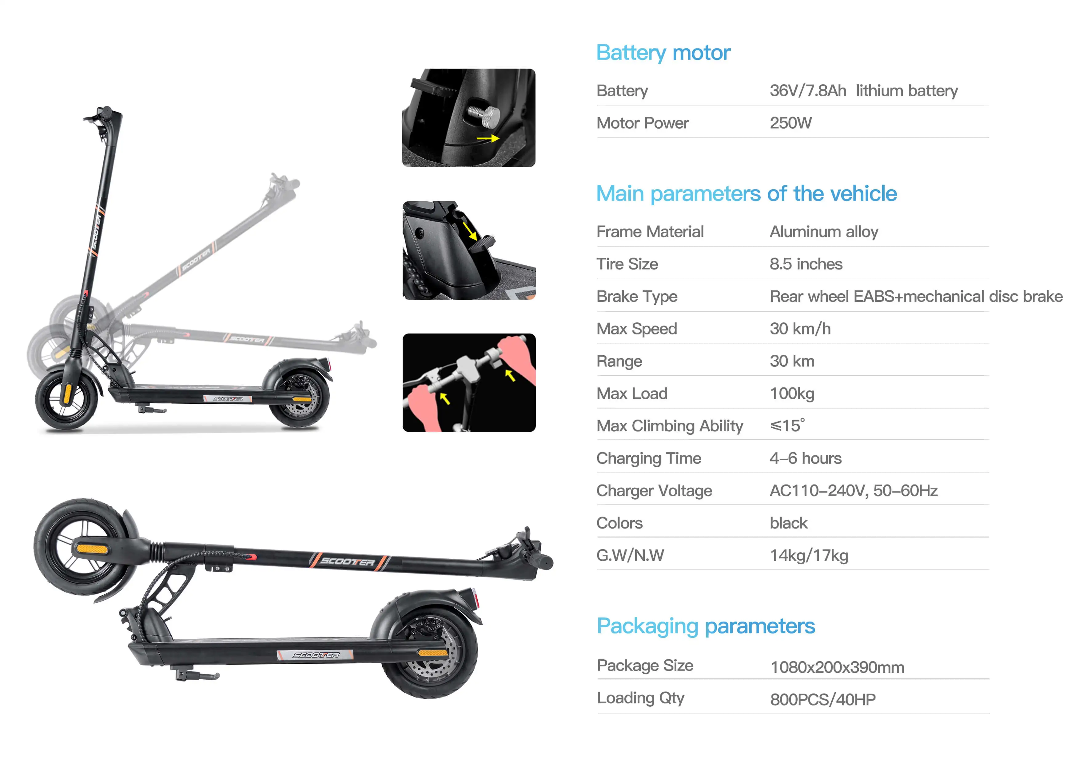 Potencia del Motor: 250w