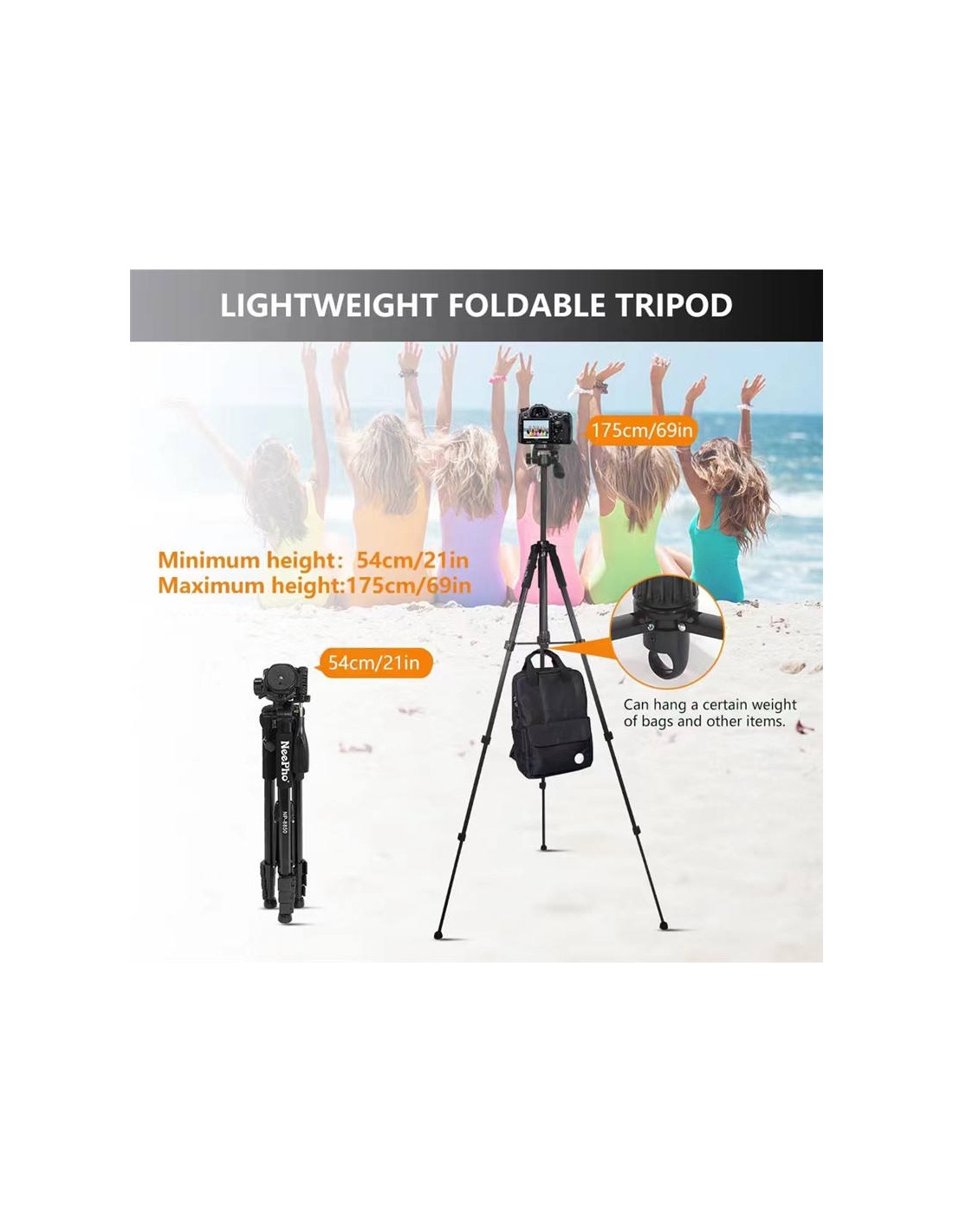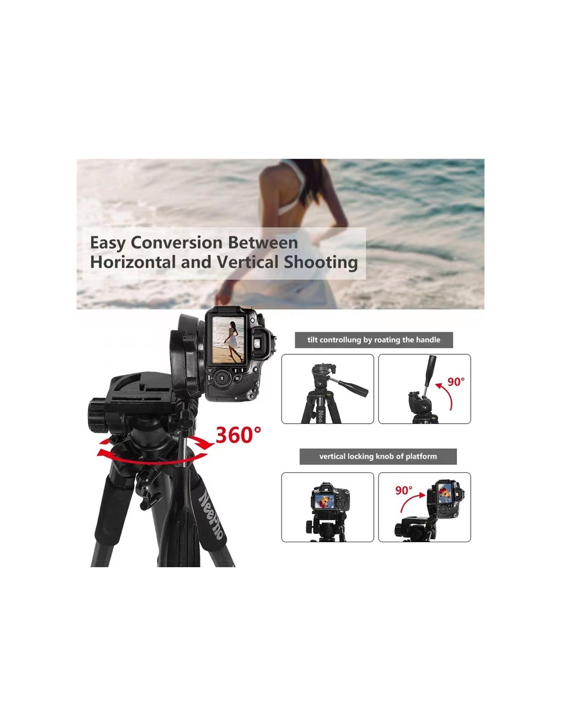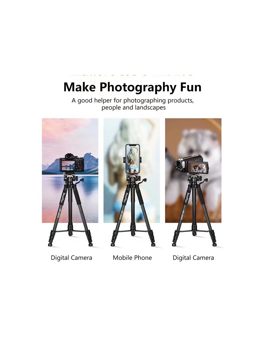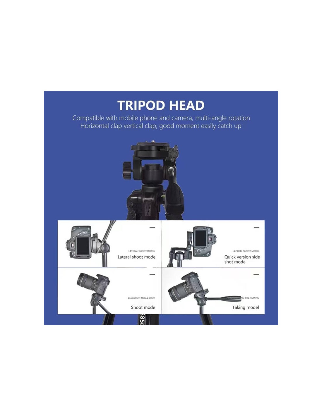 El trípode Neepho 8850 está diseñado para fotógrafos y creadores que necesitan precisión, altura y resistencia. Su cabezal de 4 vías permite ajustar el ángulo horizontal y vertical con total libertad, ideal para tomas panorámicas, retratos y grabaciones profesionales. Fabricado en aleación de aluminio, es ligero, impermeable y resistente a golpes.