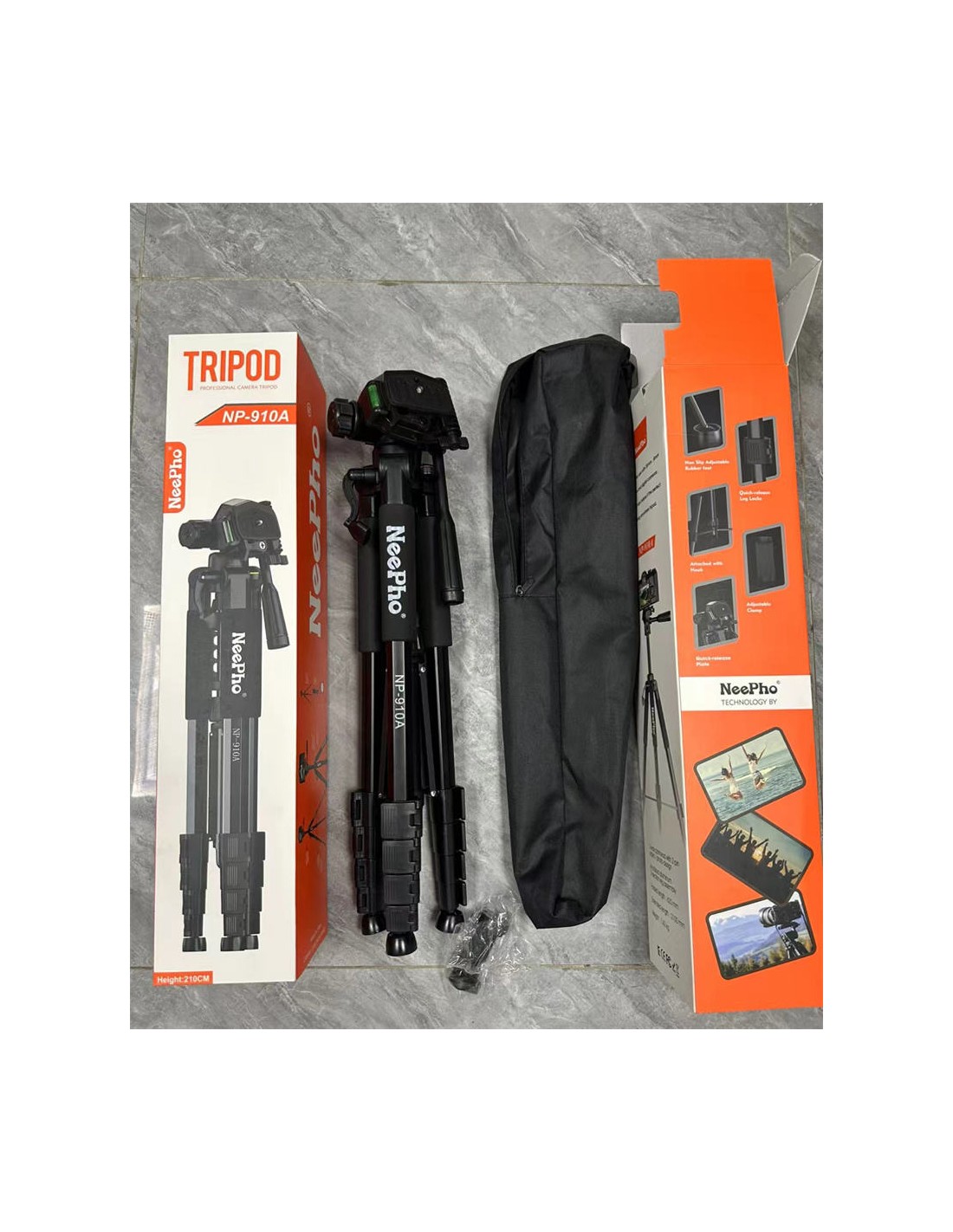 El trípode Neepho NP-910A está diseñado para quienes necesitan máxima altura, estabilidad y compatibilidad en sus sesiones fotográficas o de video. Con una estructura de aleación de aluminio resistente, este modelo alcanza hasta 2 metros de altura, ideal para tomas elevadas, eventos, grabaciones profesionales y observación.