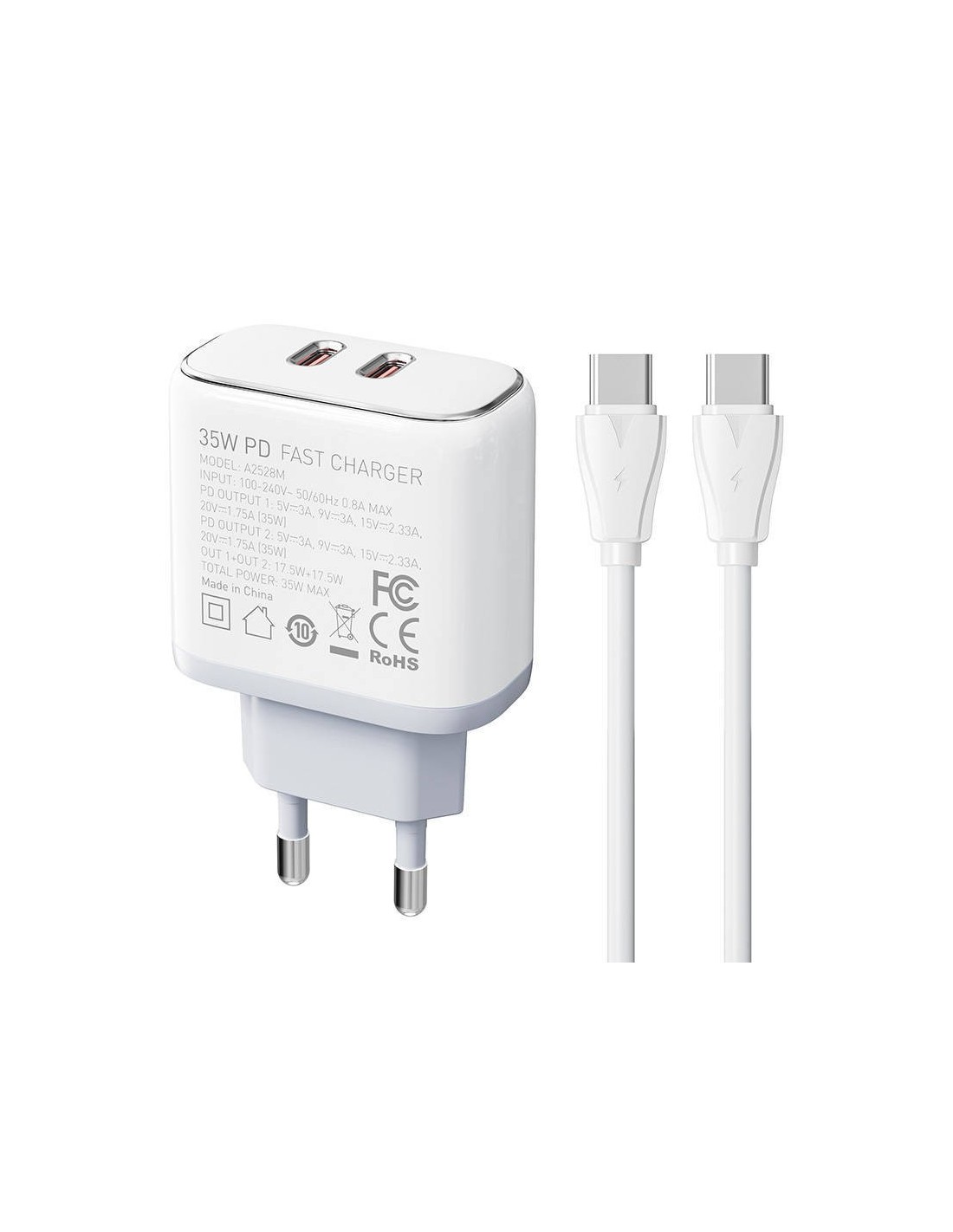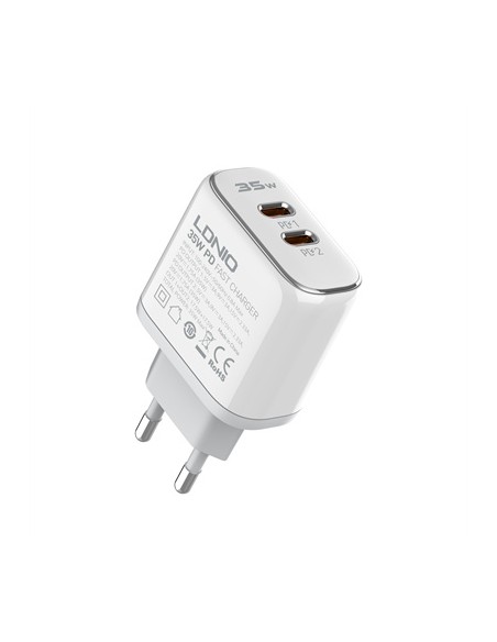CARGADOR DE PARED DUAL USB-C GAN CARGA RÁPIDA 35W + CABLE USB-C DERMAN