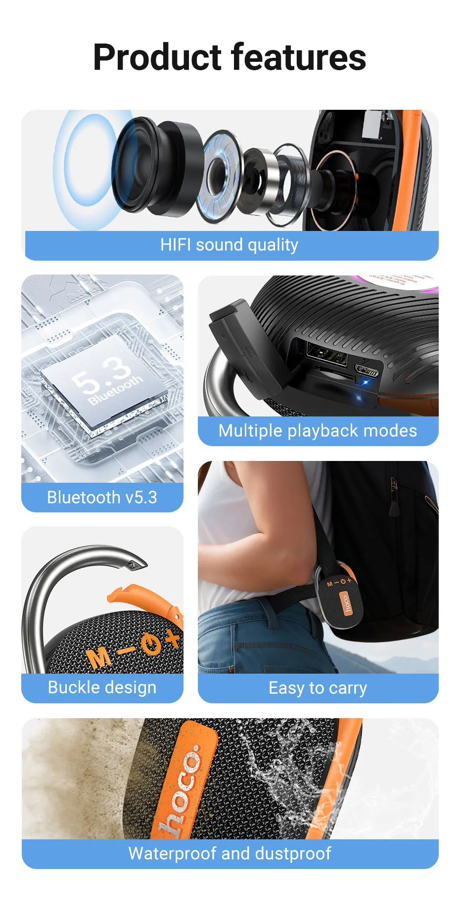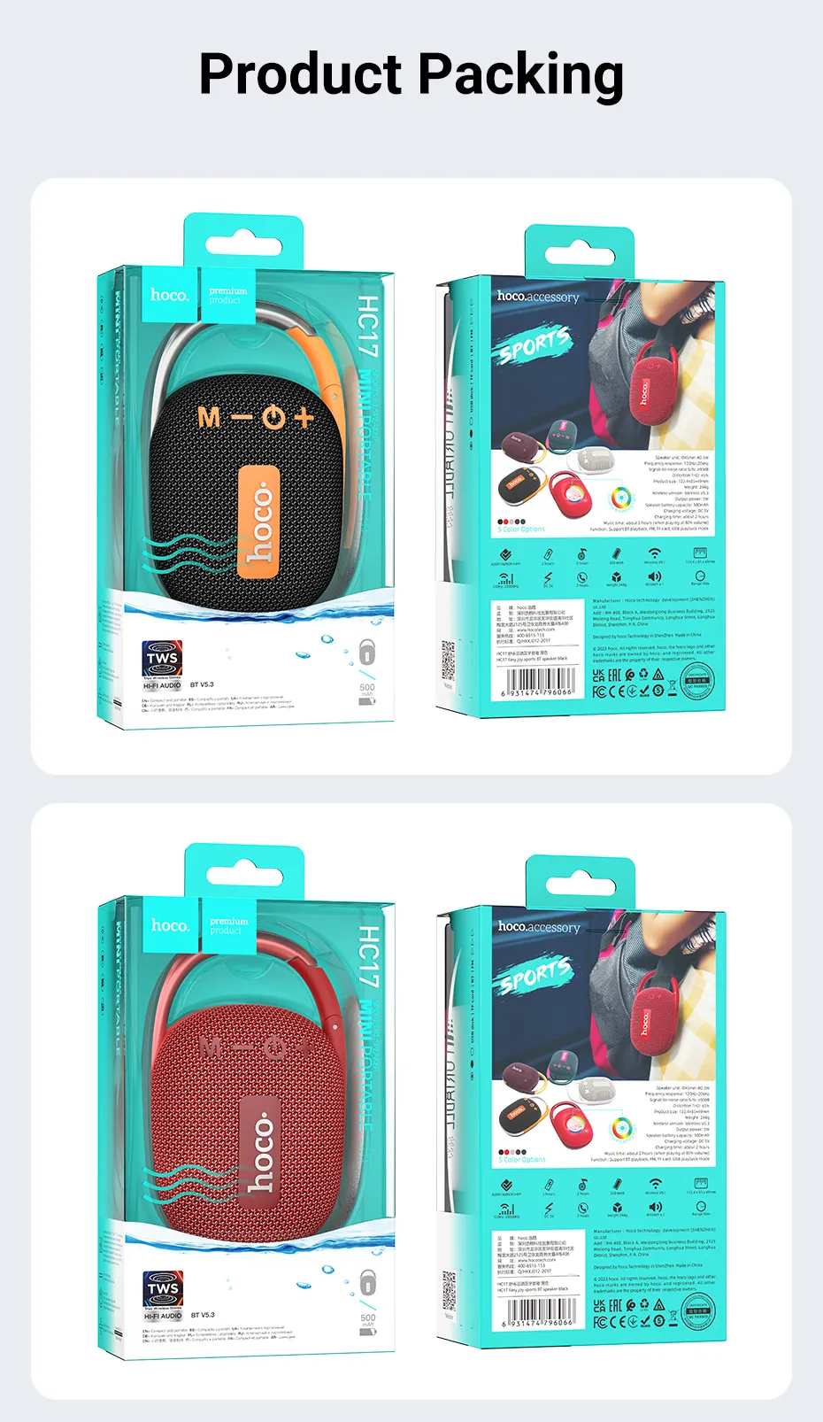 Ya sea que estés en una fiesta, en la playa o simplemente relajándote en casa, el altavoz Bluetooth portátil Hoco HC17 es el compañero perfecto para todas tus necesidades de audio. Con su impresionante calidad de sonido, su diseño elegante y sus cómodas funciones, este altavoz seguramente mejorará su experiencia auditiva.