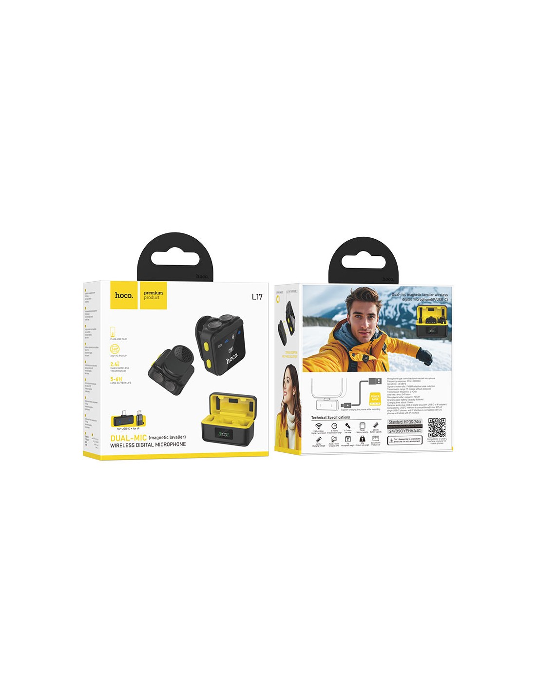 - Capacidad de la batería: micrófono – 75 mAh, estuche de carga – 600 mAh.