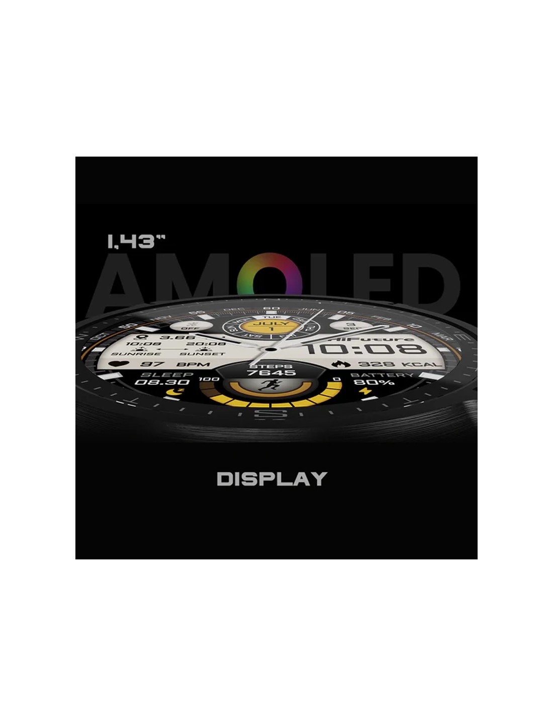 - Pantalla AMOLED de 1.43”: Colores vibrantes, negros profundos y visibilidad perfecta incluso bajo el sol.