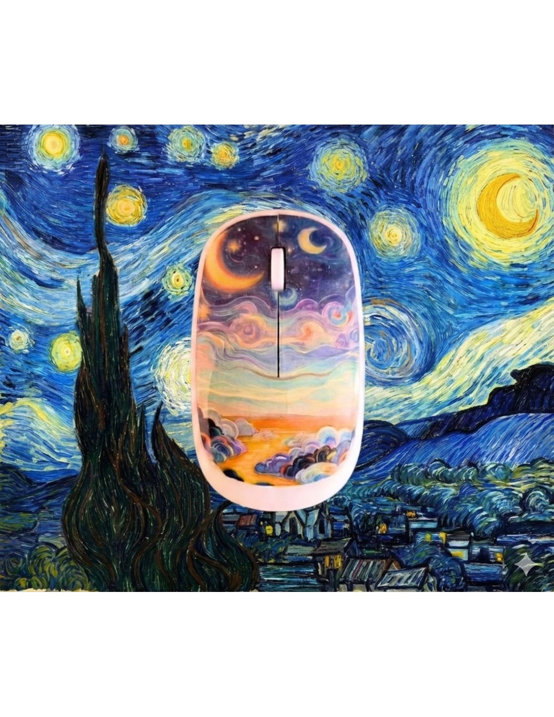 MOUSE INALÁMBRICO ARTÍSTICO EDICIÓN NOCHE ESTRELLADA: DISEÑO GALAXIA Y LUNA