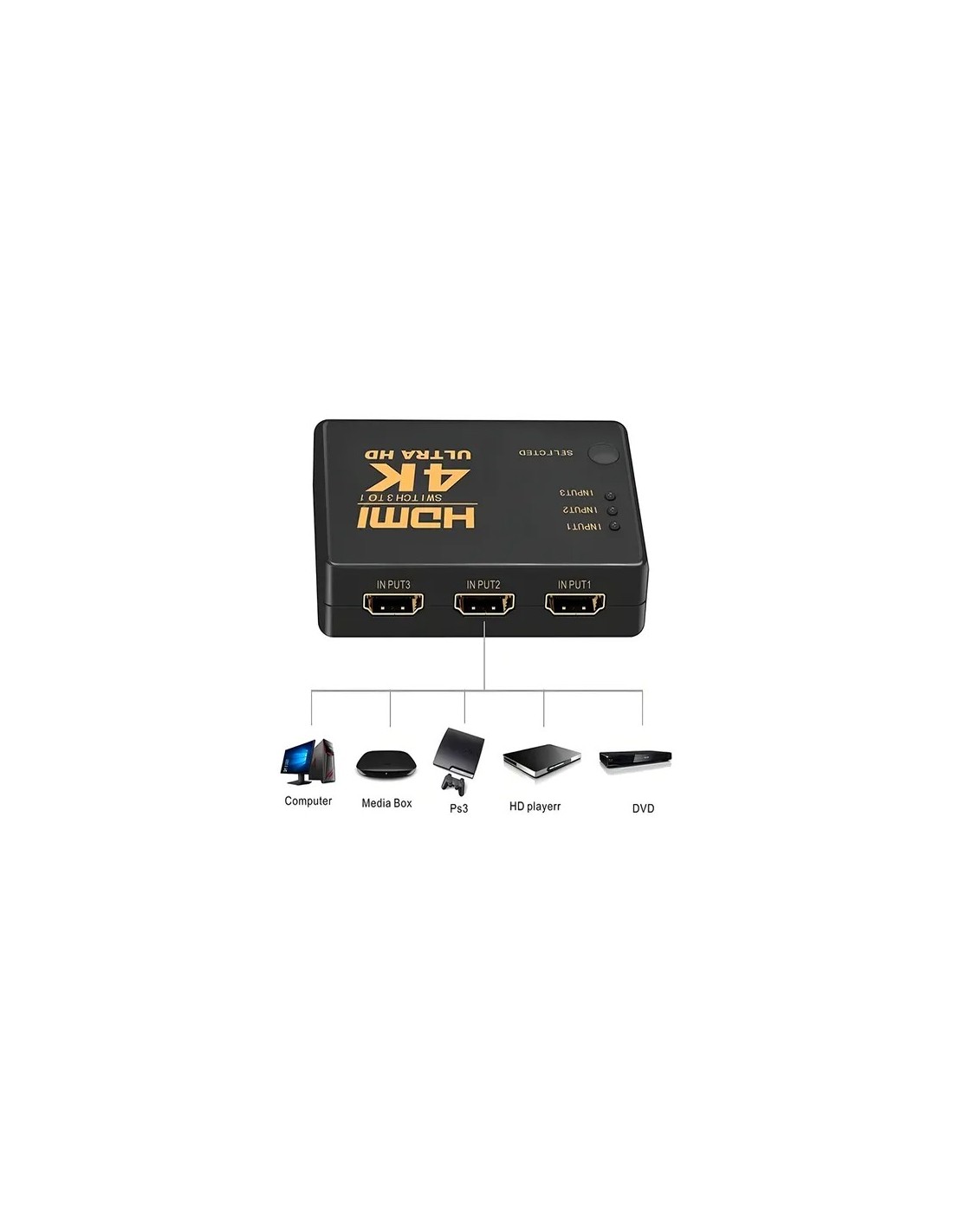 SWITCH HDMI 3 EN 1 4K ULTRA HD: SELECTOR CON CONTROL REMOTO Y RECEPTOR IR