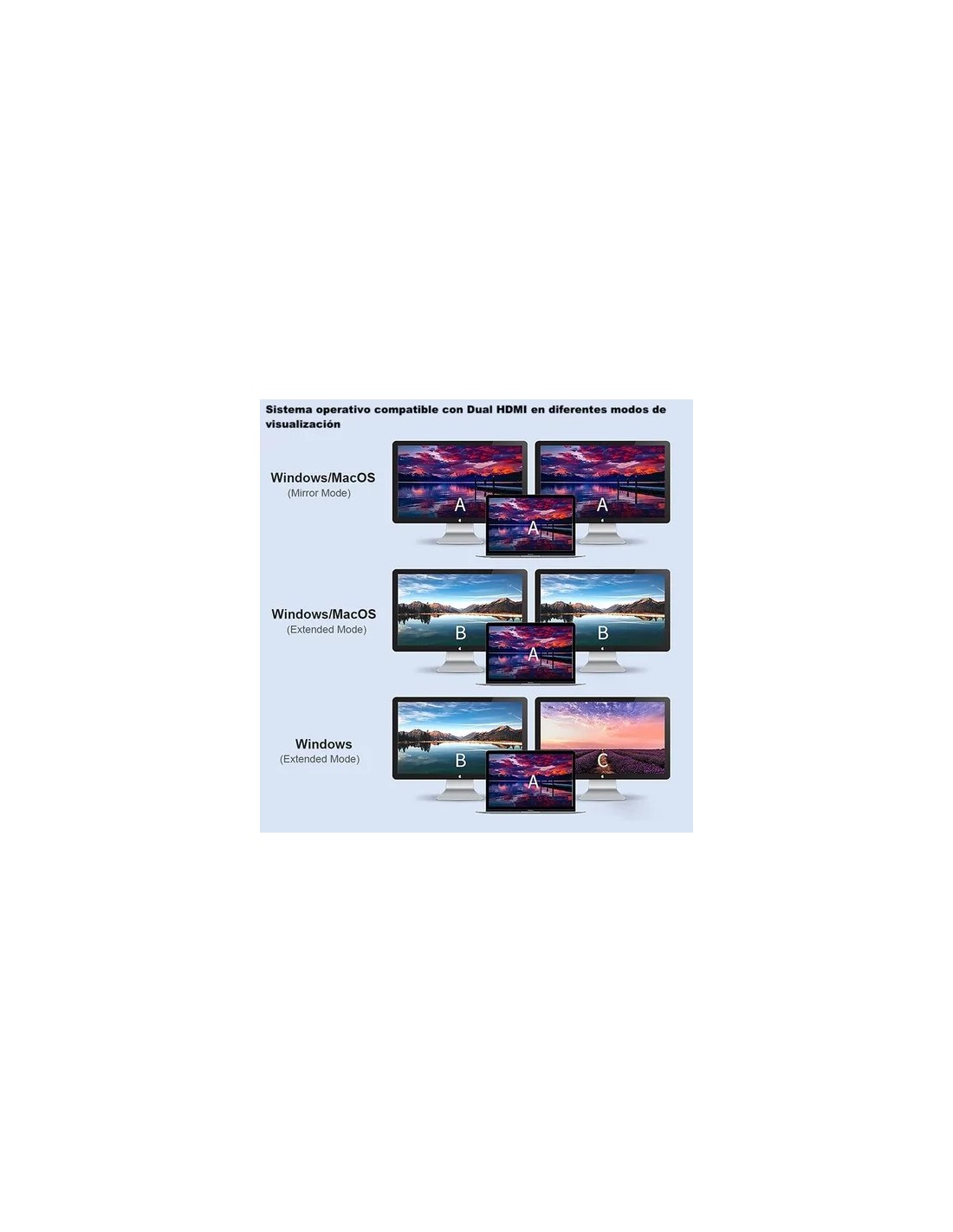 El HUB USB-C DUAL HDMI 4 EN 1 es la herramienta definitiva para profesionales y creadores de contenido que buscan maximizar su espacio de trabajo.