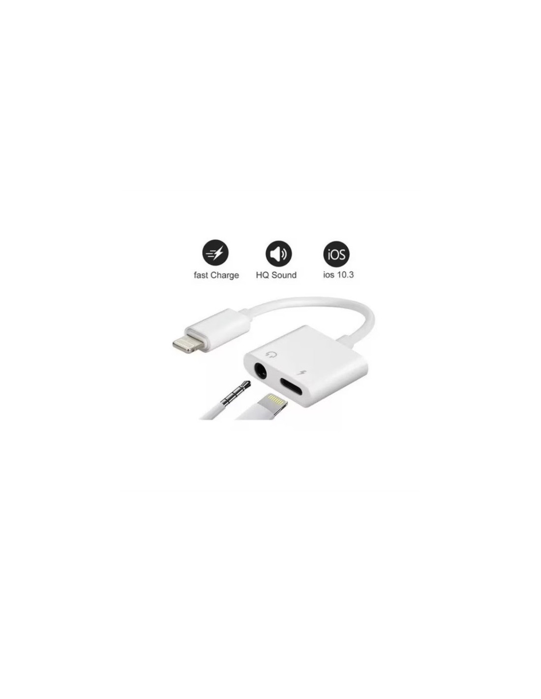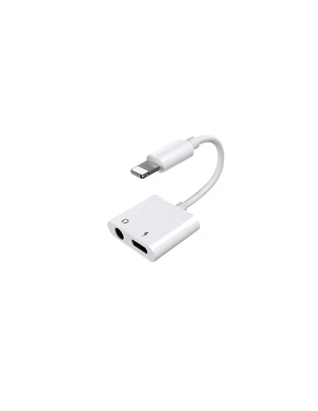 ADAPTADOR LIGHTNING 2 EN 1: SPLITTER PARA CARGA Y AUDIO JACK 3.5MM COMPATIBLE CON IPHONE